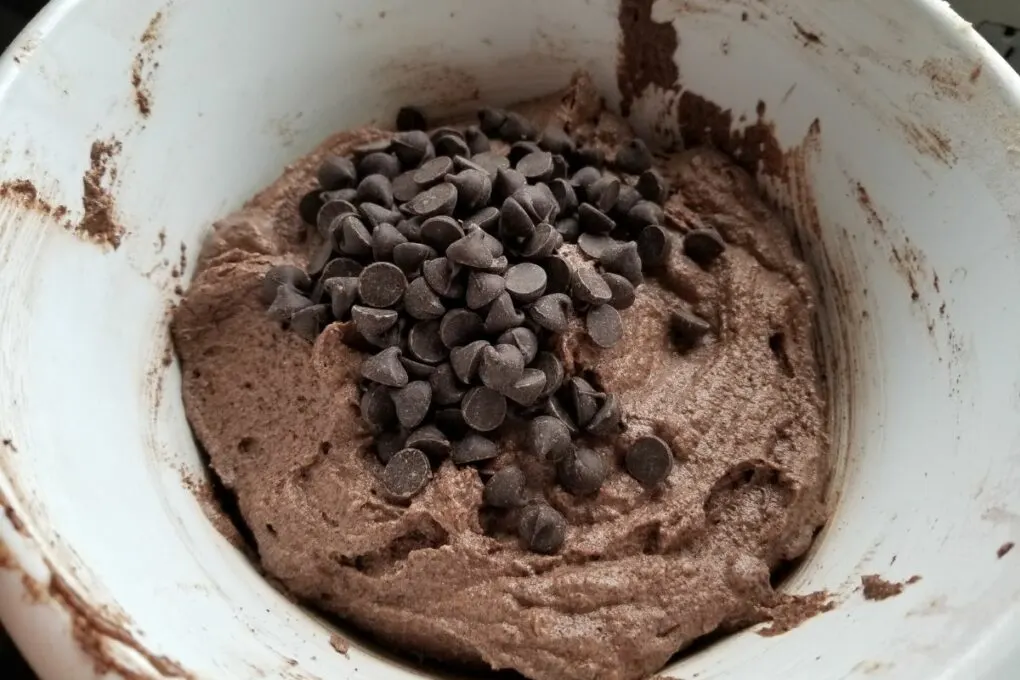 - Once the dry ingredients are incorporated, pour in the milk and mix until incorporated, then lightly blend or fold in the chocolate chips (if using).